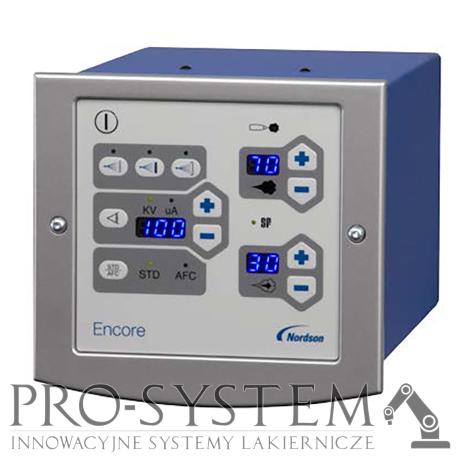 Prosty układ panelu dotykowego sterownika Encore LT, podświetlone ikony oraz jasne i przejrzyste wyświetlacze LED ułatwiają regulowanie i nadzorowanie wszystkich nastaw elektrostatycznych i pneumatycznych.