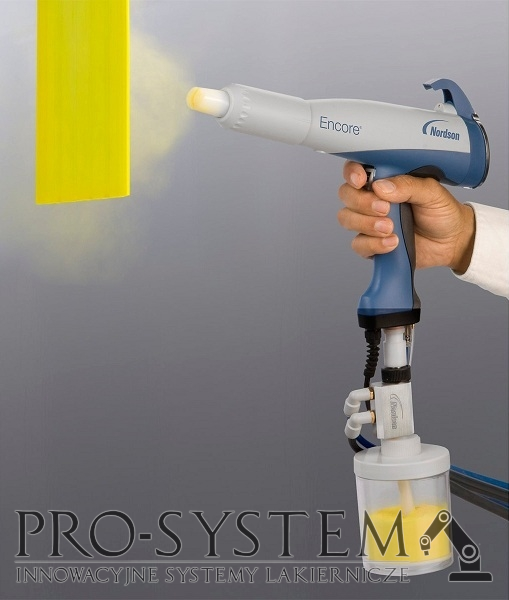 Lekki ręczny pistolet proszkowy nordson Tribomatic® 500 umożliwia pełną kontrolę chmury natryskiwanego proszku, zapewniając wyjątkowo gładkie wykończenie i doskonałe krycie najtrudniejszych kształtem produktów.