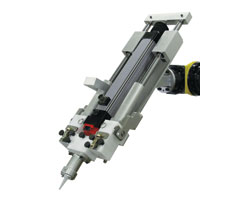 Przegubowy kartridż naboju otwiera się w celu załadowania i rozładowania obu wkładów w celu dostarczenia materiału do zespołu dozownika, podczas gdy zintegrowany zawór dozujący eliminuje węże dozujące i zwiększa dokładność kontroli perełek i objętości.