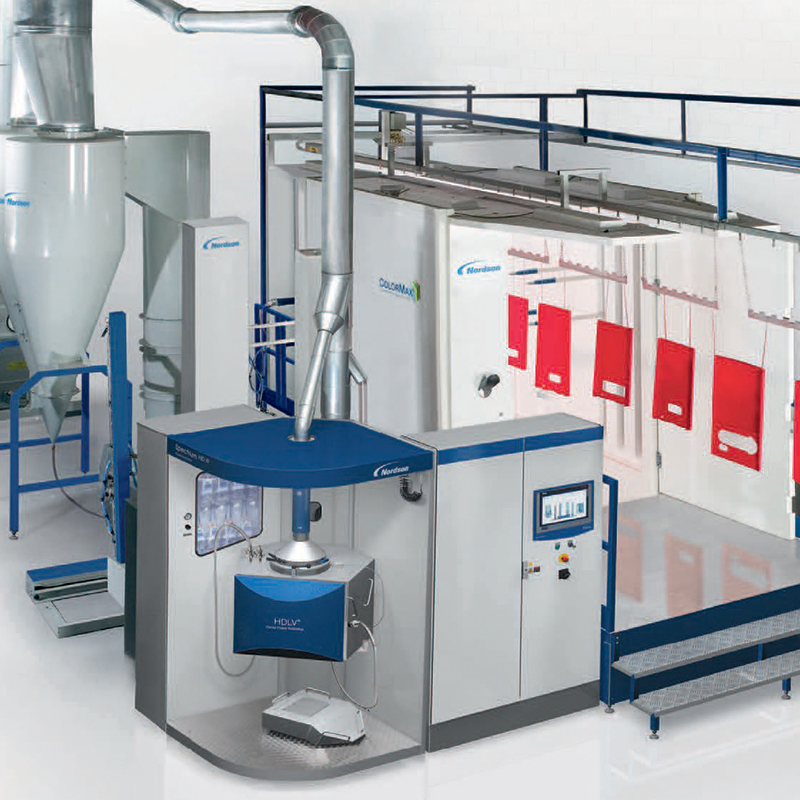 ColorMax® 3 to szybkobieżna kabina lakiernicza do malowania proszkowego. Poprawia jakość, skraca przestoje i maksymalizuje produkcję. Podłoga kabiny jest wykonana z trwałego materiału kompozytowego Apogee® i jest automatycznie oczyszczana, zapobiega gromadzeniu się proszku w kabinie. Sprawdzona konstrukcja wlotu powietrza gwarantuje łagodny przepływ, co zapewnia wysoką wydajność aplikacji proszku i niezawodne zabezpieczenie przed rozpryskiem.